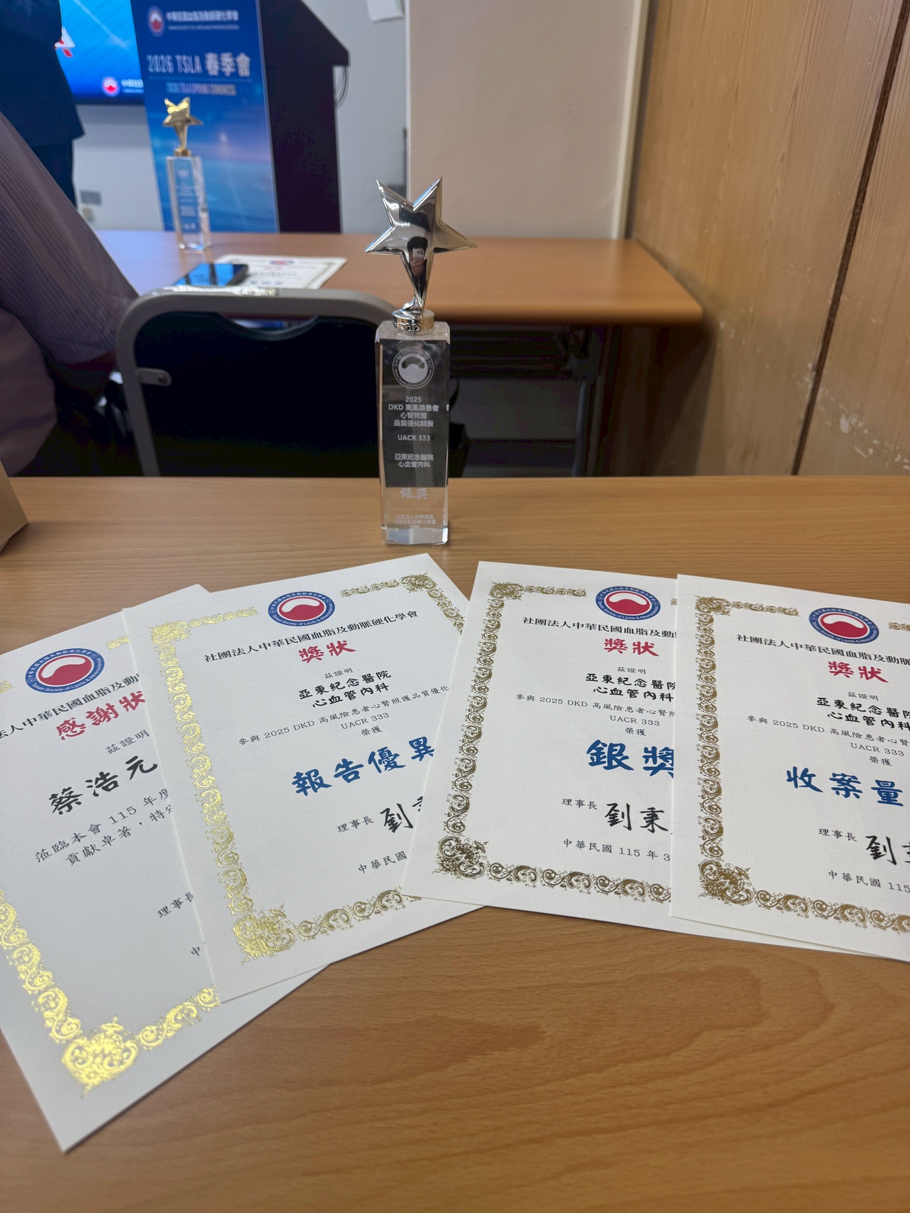 亞東紀念醫院心臟內科團隊榮獲【中華民國血脂及動脈硬化學會】舉辦之[UACR 333_2025 DKD 高風險患者心腎照護品質優化競賽] 成效追蹤【第二名】之殊榮